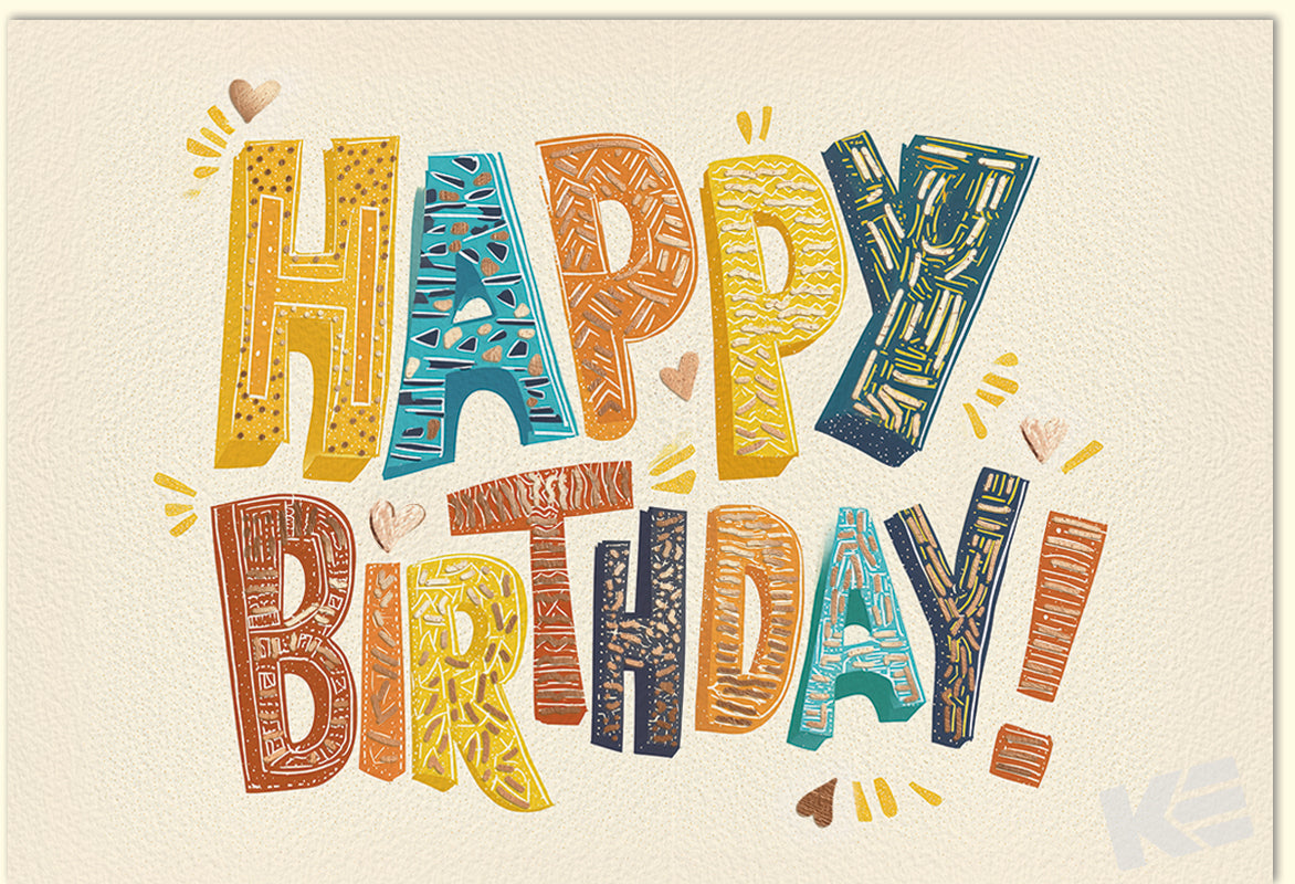 Verkauf nur als Dreher-Konzept, Geburtstag, Beautiful Green, strukturierter weißer Karton, Druckkarte, mit Prägung, der Natur zuliebe unverpackt, Bunt Happy Birthday, QUER