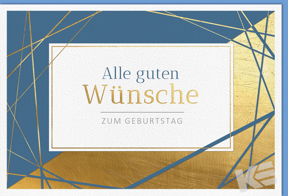 Verkauf nur als Dreher-Konzept, Geburtstag, Beautiful Green, strukturierter weißer Karton, Druckkarte, QUER, mit Prägung, der Natur zuliebe unverpackt, Streifen, Text Alle guten Wünsche