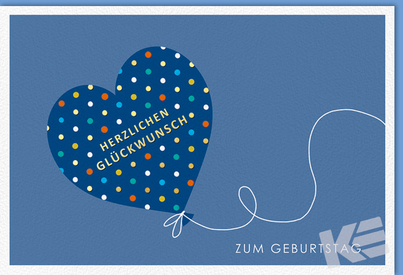Verkauf nur als Dreher-Konzept, Geburtstag, Beautiful Green, strukturierter weißer Karton, Druckkarte, QUER, mit Prägung, der Natur zuliebe unverpackt, Herzballon