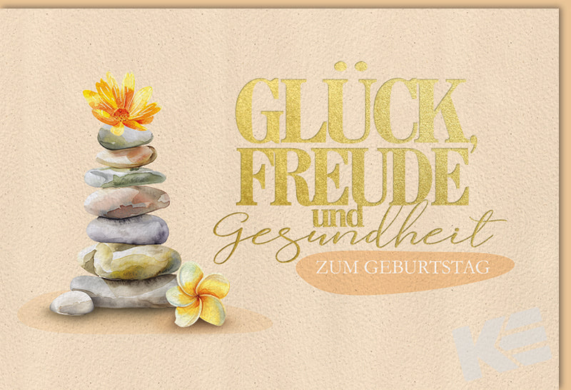 Verkauf nur als Dreher-Konzept, Geburtstag, Beautiful Green, strukturierter weißer Karton, Druckkarte, QUER, mit Prägung, der Natur zuliebe unverpackt, Blumen, Steinsäule