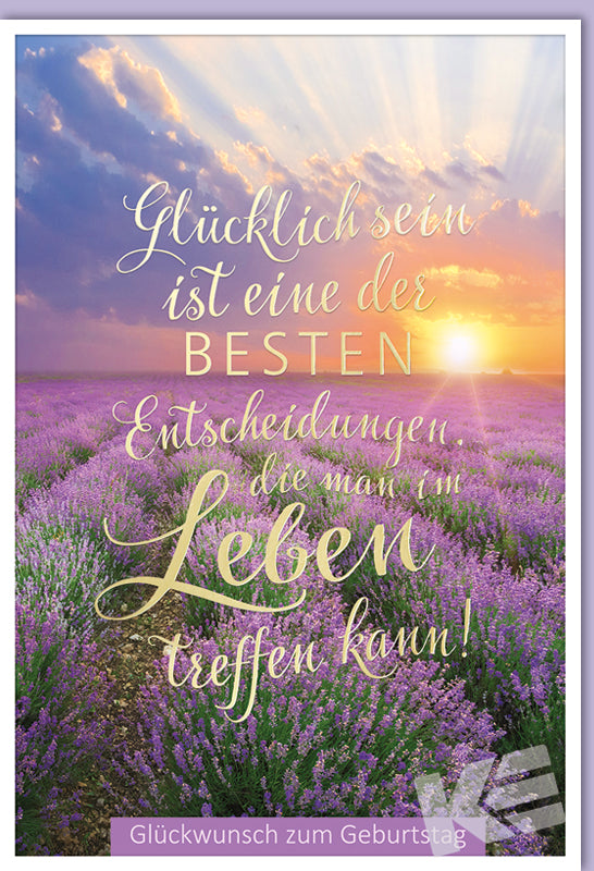 Geburtstag, weißer Karton, Prägung, Lavendelfeld, Sonnenuntergang