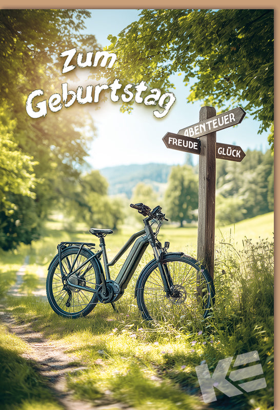 Druckkarte, 250g Karton weiß, That´s Life, Rahmen geprägt, Prägung, silber, Reisen, Camping, Wohnmobil, Berge, Bergsee, Fahrräder