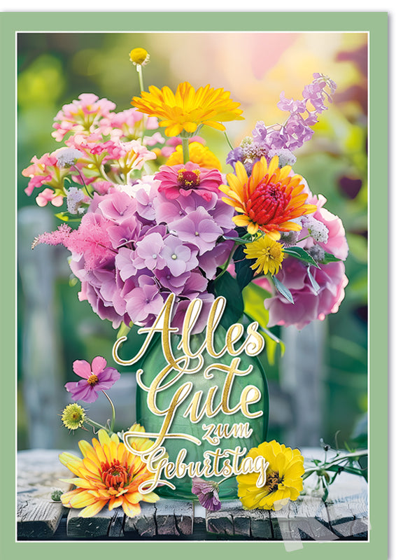 XXL Glückwunschkarte zum Geburtstg, Grußkarte mit Prägung und weißen Umschlag, gedruckt auf weißen Karton, Druckmotiv ein bunter Blumenstrauß
