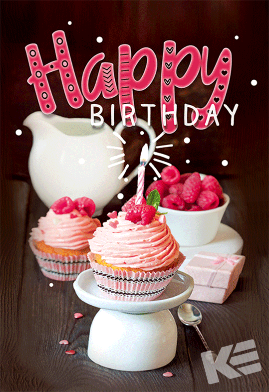 Geburtstag, Druckmotiv, weißer Karton, Muffin, Kanne, Himmbeeren, Kerze, Happy Bierhday, Darstellung in 3D
