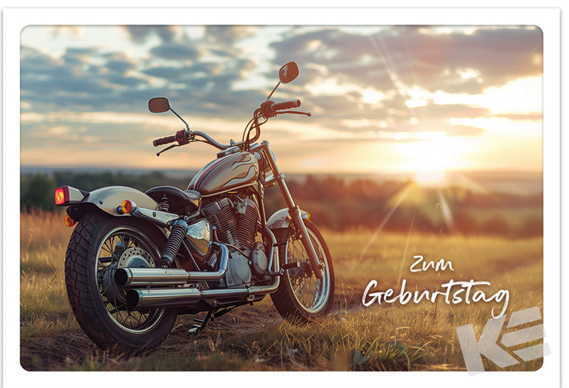 Geburtstag, Illumina, weißer glatter Karton, Druckmotiv, Motorrad
