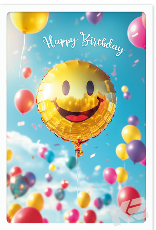 Geburtstag, Illumina, weißer glatter Karton, Druckmotiv, Smiley, Luftballon