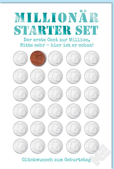Geburtstag, Millionär, Karte mit Accessoires, 1 Cent geklebt