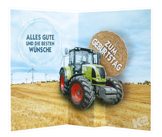 Pop-up Klappkarte, Innenteil 3D, dimensional art, Pop up, Klappkarte, Traktor, Feld, Strohballen