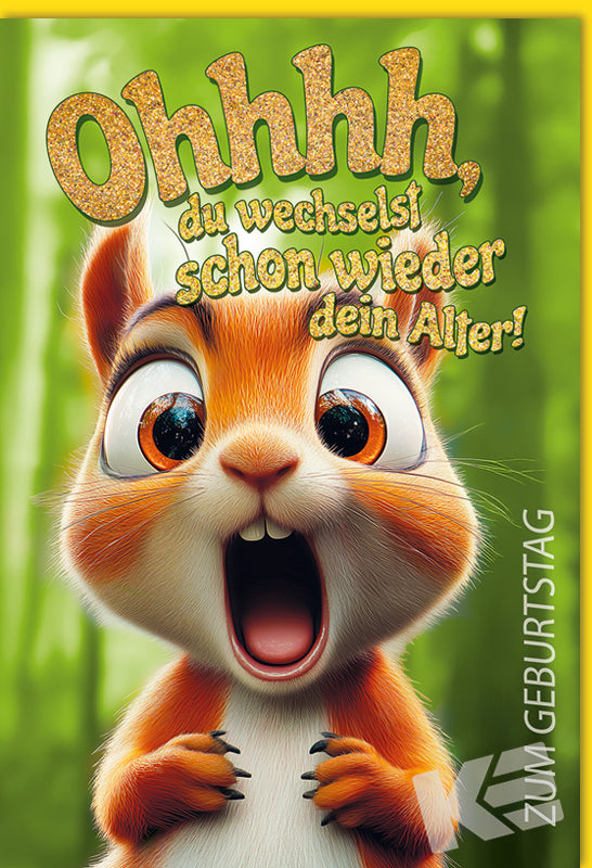 Geburtstag, weißer Karton, Druckkarte, Hase, große Augen, Karte mit Glimmereffekt