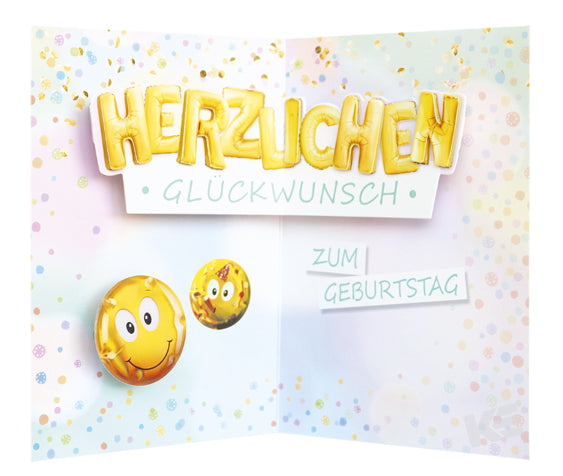 Pop-up Klappkarte, Innenteil 3D, dimensional art, Pop up, Klappkarte, Luftballons, Kerzen, Smiley