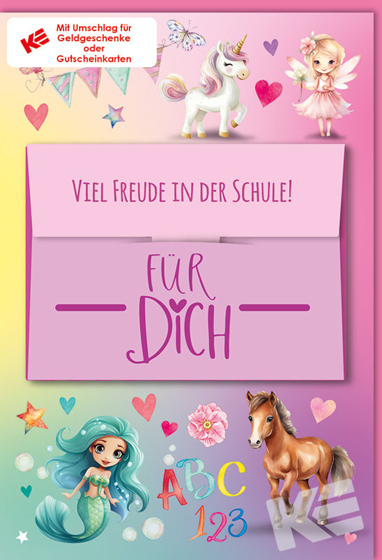 Schulanfang, Druckkarte, weißer Karton, Geldscheinkarte, mit Stanzung für Großen Umschlag,