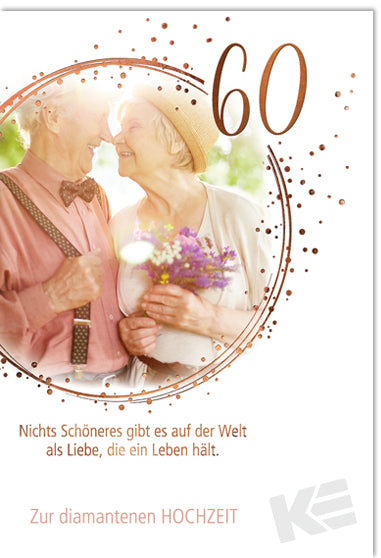 Glückwünsche zur Diamanthochzeit, Druckmotiv auf glatten weißen Karton, Rosen mit Ringe