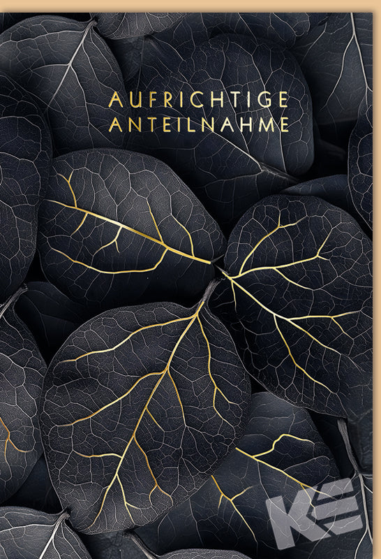 Trauer, Druckkarte, weißer Karton, Blätter, mit Heißfolienprägung, Aufrichtige Anteilnahme