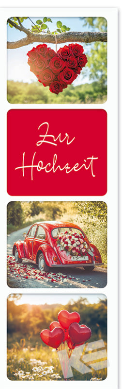 Hochzeit , Illumina, weißer glatter Karton, Druckmotiv, Auto, Herzen, Hochzeitsauto, Käfer, Format Lesezeichen 7 x 22,6 cm