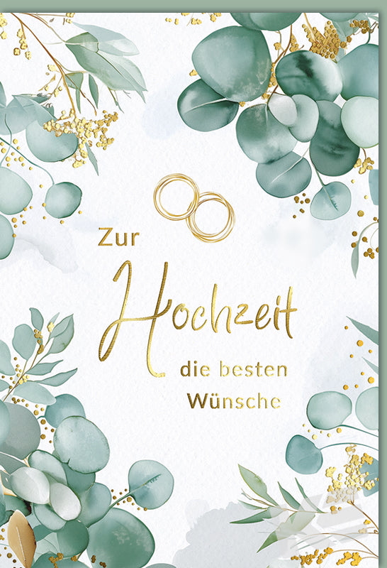 Hochzeit, weißer Karton, Druckkarte, Efeu, Ranke, mit Heißfolienprägung