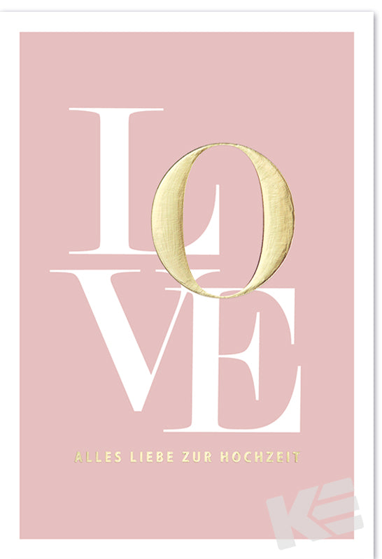 Hochzeit, Druckkarte, weißer Karton, große Buchstaben, Love, mit Heißfolienprägung