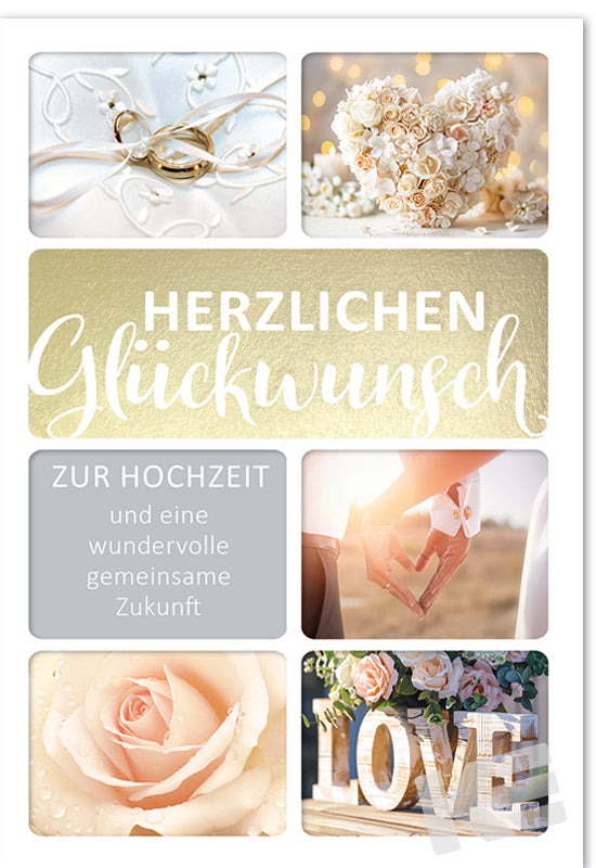 Hochzeit, weißer Karton, Druckmotiv, kleine Bilder, Rosen, Ringe, Herzen